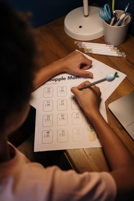 Parents and educators can easily print copies for classroom use or at-home practice. The portability of PDFs allows learning to happen anywhere: during travel, at the kitchen table, or even outdoors. This convenience fosters consistent practice and reinforces mathematical concepts effectively, supporting a child’s learning journey;